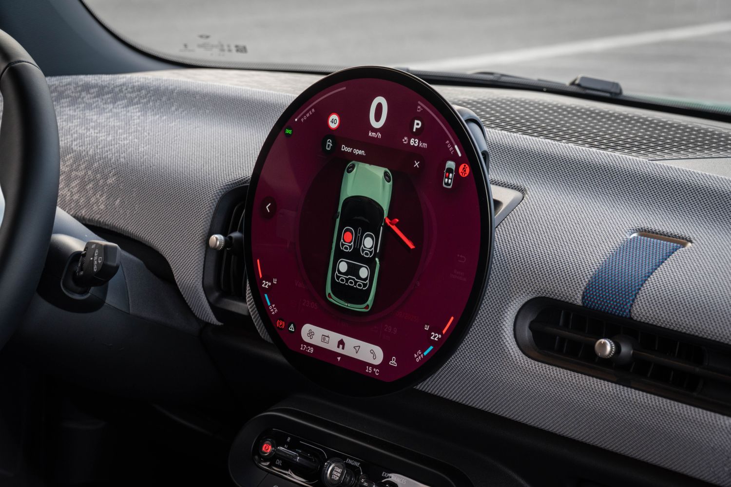 Во кабината главниот фокус оди кон огромниот кружен OLED дисплеј преку кој се контролираат повеќето функционалности, додека веднаш под него е „клучот“ за старт, селекторот за пренос и контролерот за избирање на режим за возење, односно еден од неколкуте различни профили.